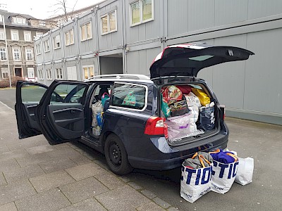 Kurzentschlossen organisierte Christiane Feith-Becker durch Kontakte zur Caritas und zu weiteren Frankfurter Schulen eine Hilfsaktion, die Resonanz und die Hilfsbereitschaft an unserer Schule war überwältigend.