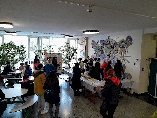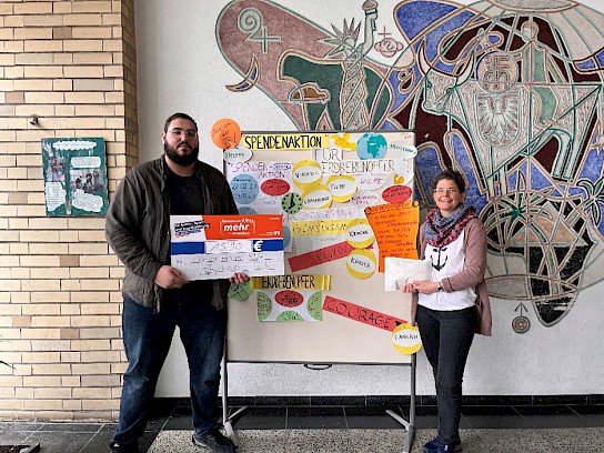Kurzerhand wurde unter der Führung von Schulsprecher Raphael Kollaras und seiner Stellvertreterin Sejla Licina (oben rechts im Bild) eine einwöchige Spendenaktion ins Leben gerufen, die vom 27.02.-03.03. dauern wird.